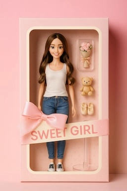 写真を、着せ替え人形が入ったおもちゃパッケージBOXのように加工してください。